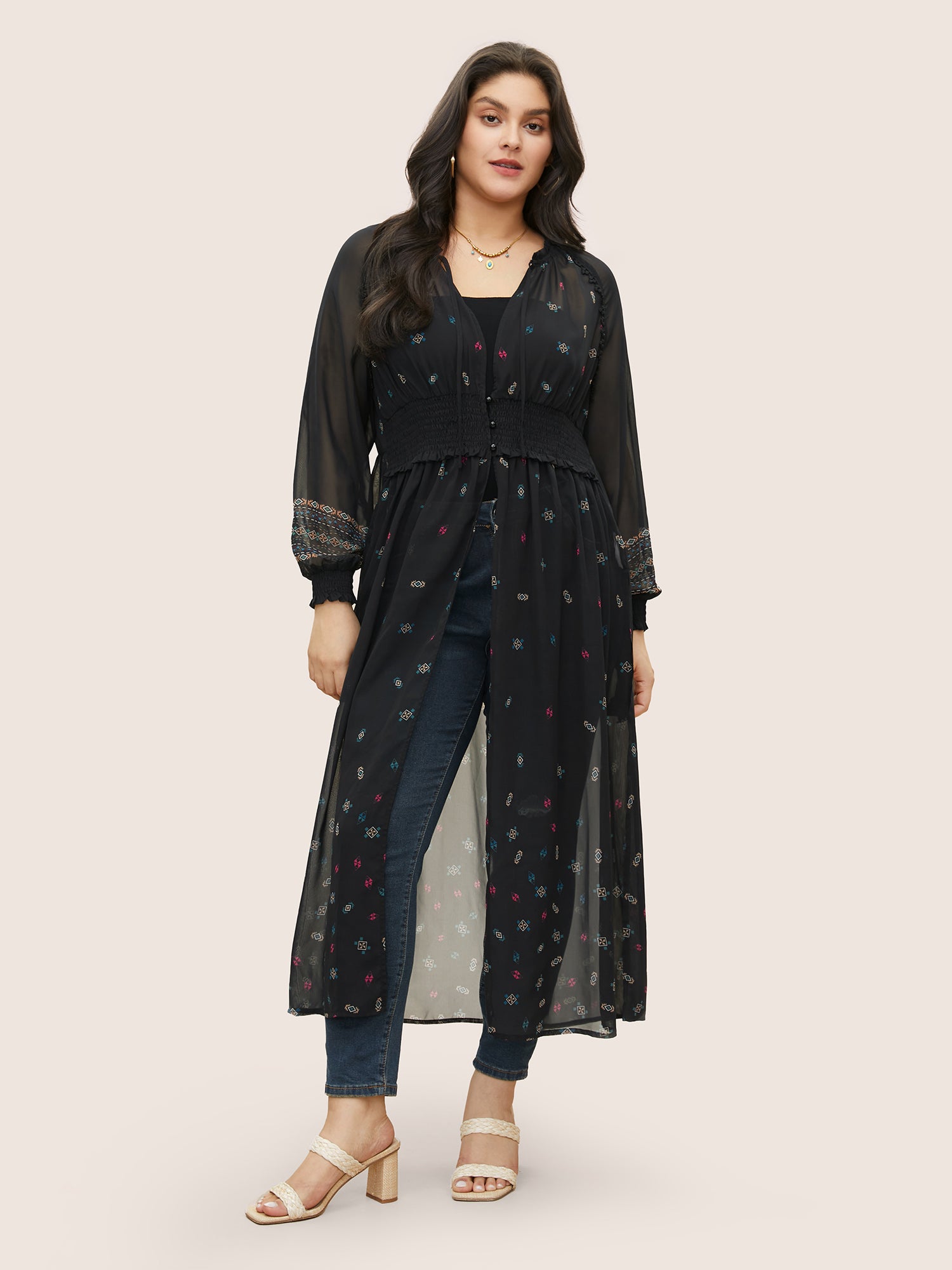 Bandana Print Petal Sleeve Tie Neck Pompom Trim Blouse