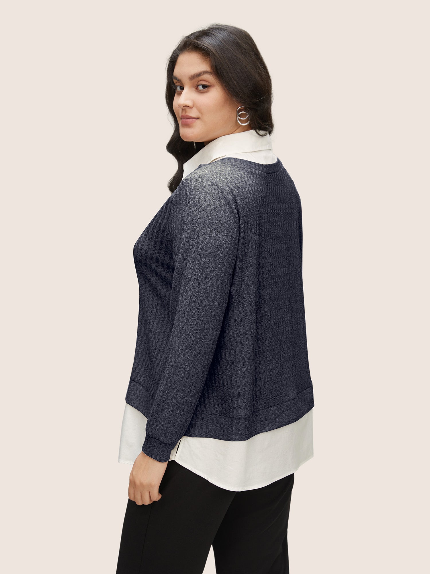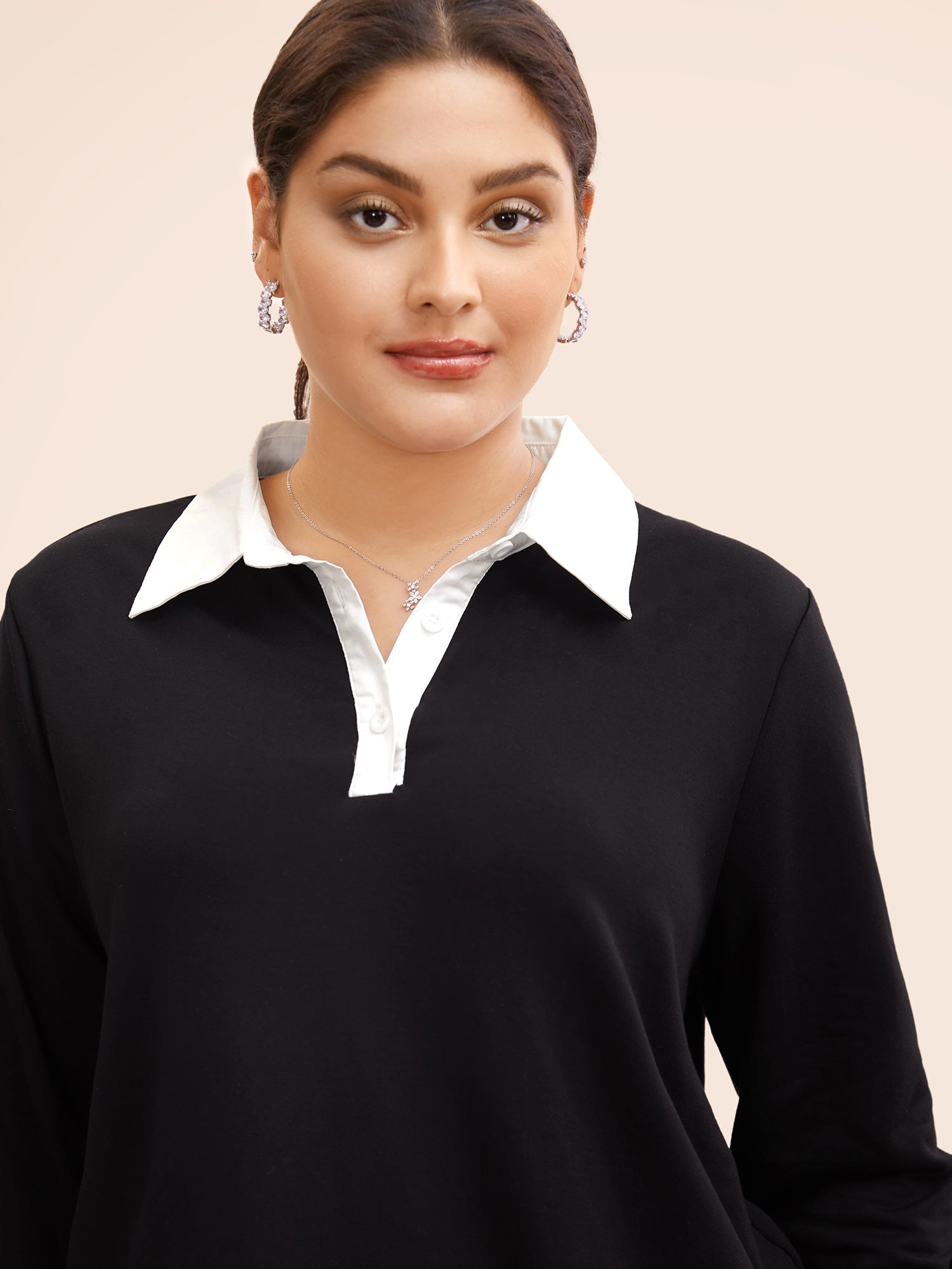 2-in-1 Layered Contrast Collar Sweatshirt
