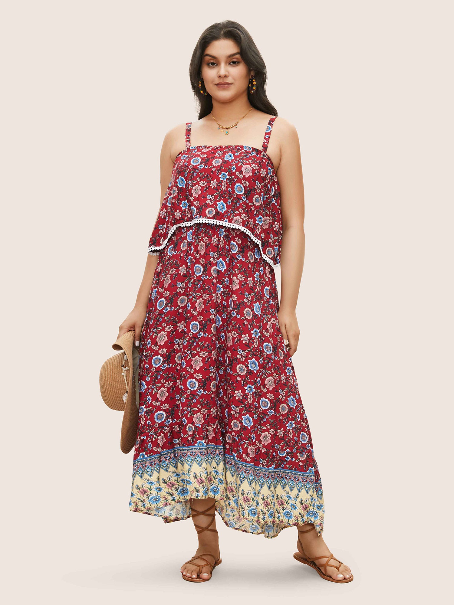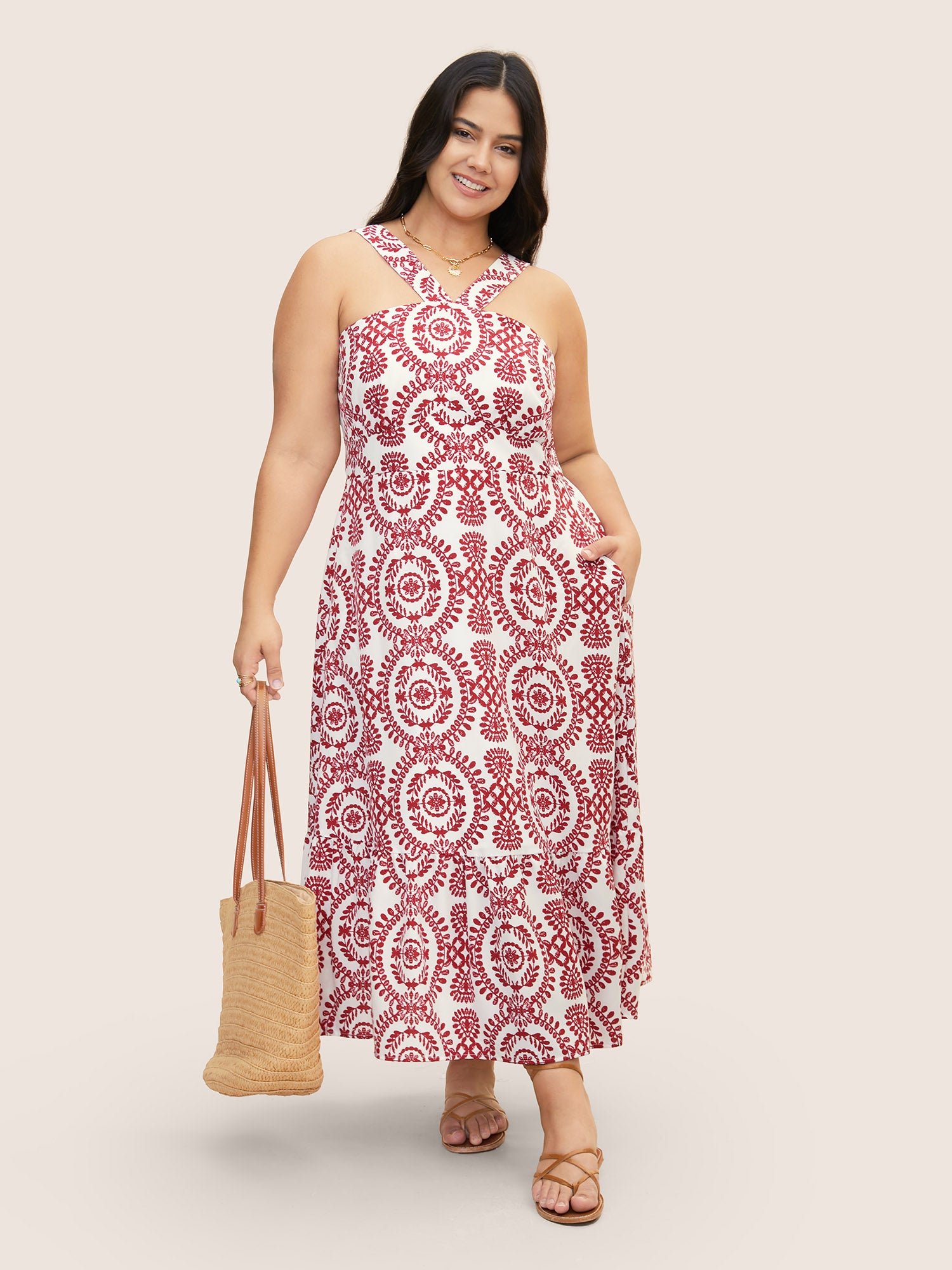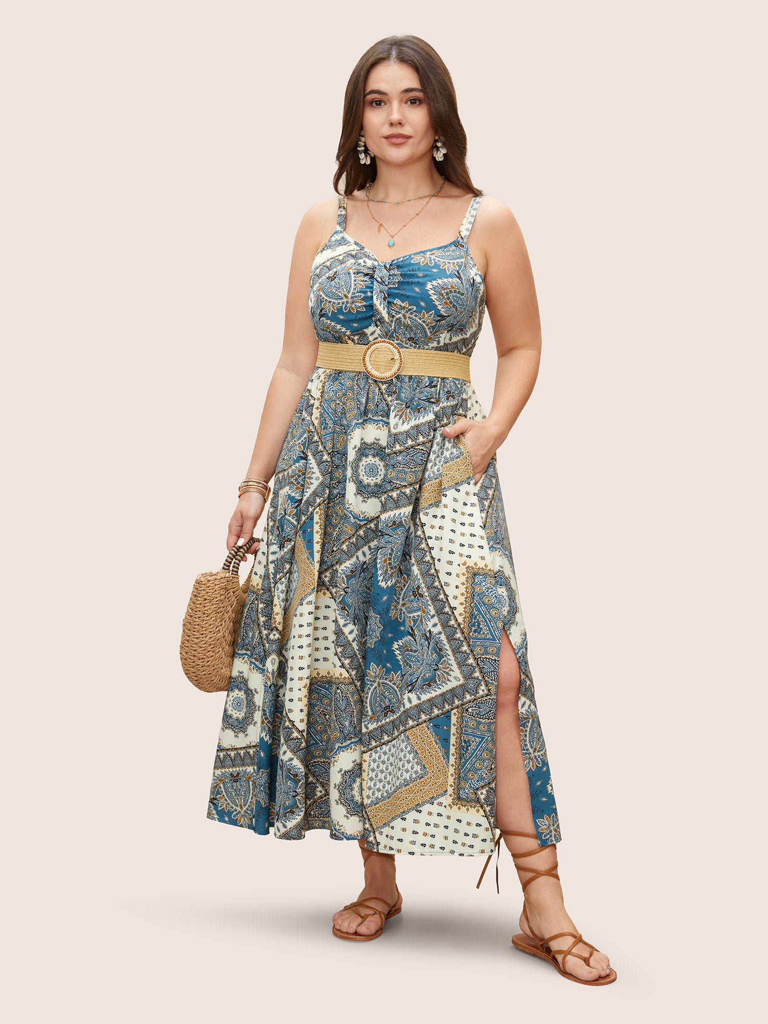 Bandana Print Spaghetti Strap Pocket Ruffles Asymmetrical Hem Maxi Dress$5.90 USD$35.90 USDDescribe your product