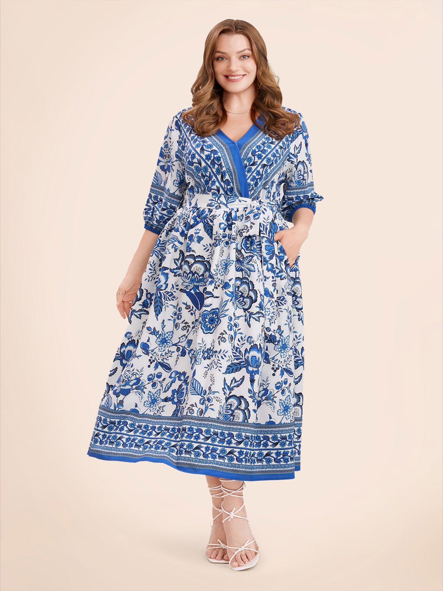 Bandana Print Surplice Neck Lantern Sleeve Pocket Belted Midi Dress$5.90 USD$35.90 USDDescribe your product