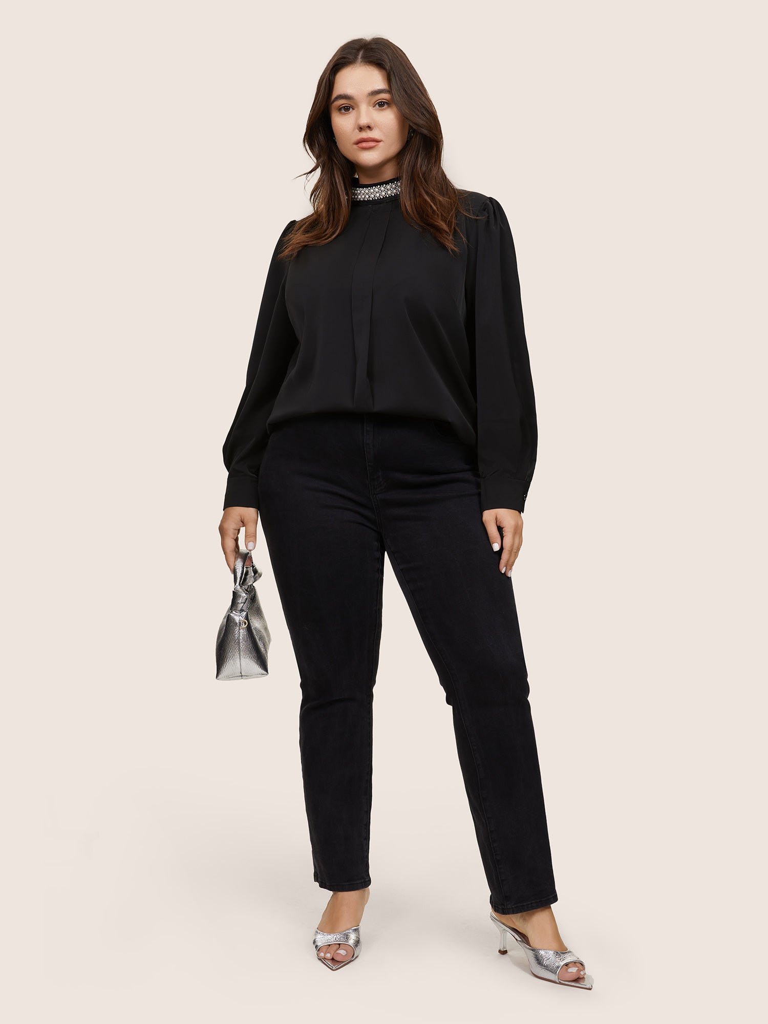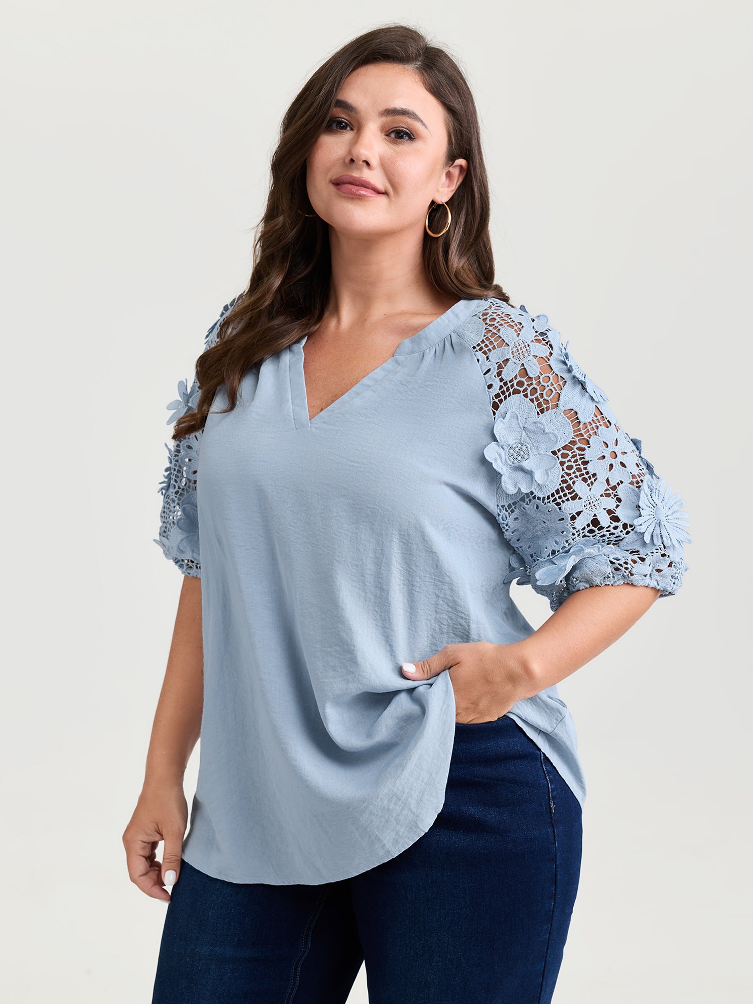 Anti-Wrinkle Broderie Anglaise Knot Neck Frill Trim Lantern Sleeve Blouse$5.90 USD$25.90 USDDescribe your product
