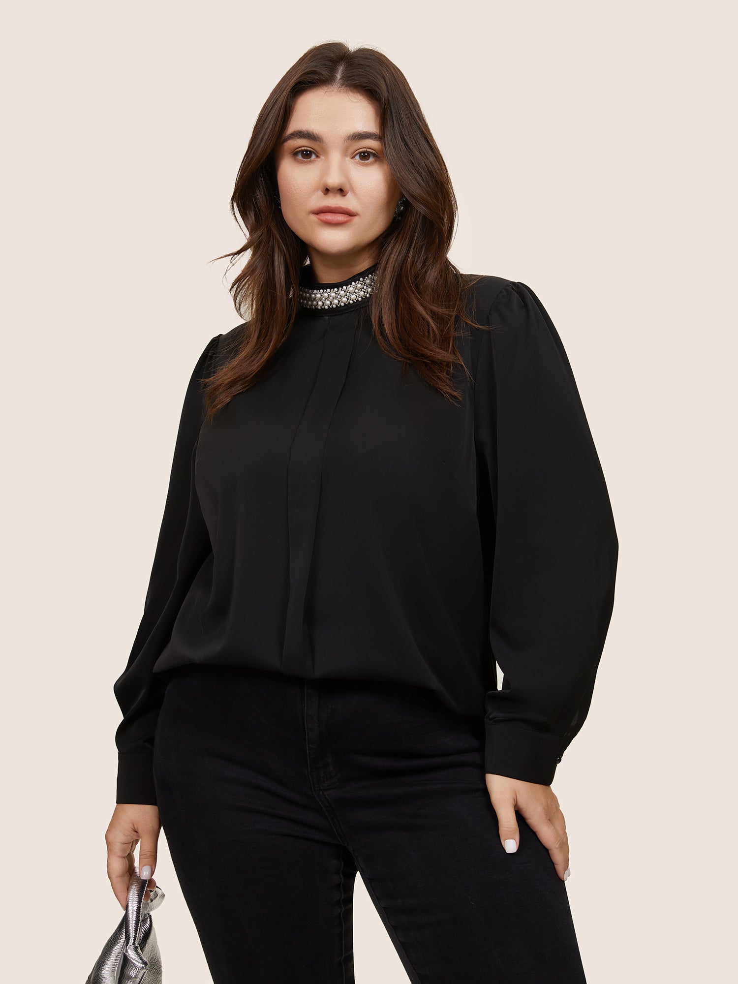 Anti-Wrinkle Plain Knot Neck Frill Trim Lantern Sleeve Blouse$5.90 USD$25.90 USDDescribe your product