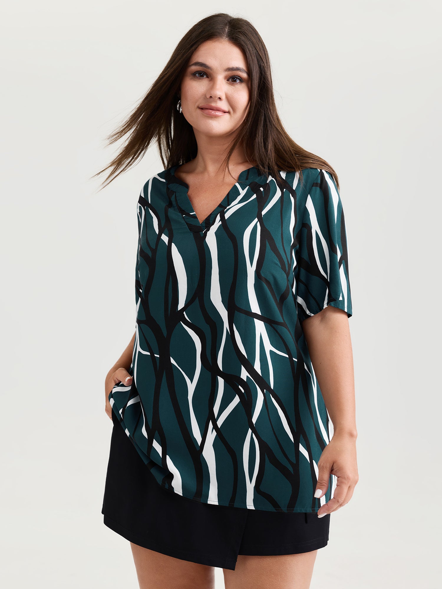 Anti-Wrinkle Contrast Zip Up Flutter Sleeve Hanky Hem Blouse$5.90 USD$25.90 USDDescribe your product