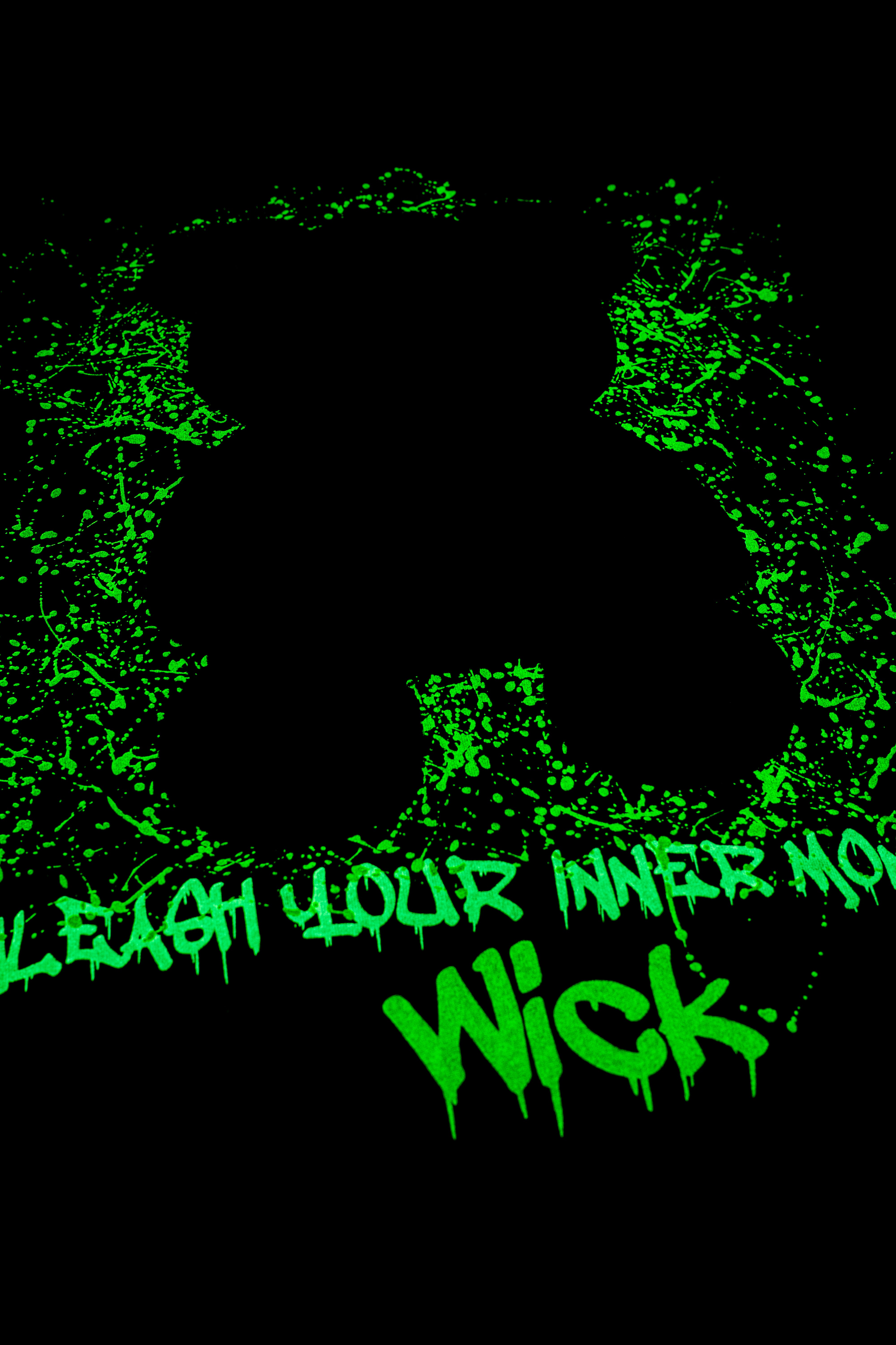 Dare to wear the wild side. The Oversized NR Black Bear Tee from Wick Monsters drops the cute act and brings a savage edge. Featuring a neon-splashed monster bear with stitched eyes and a fierce grin, this tee is your ticket to glowing in the dark—literally. Whether you're at a festival or just causing a scene, this tee makes sure you're unforgettable.  Glow in the dark and on UV light