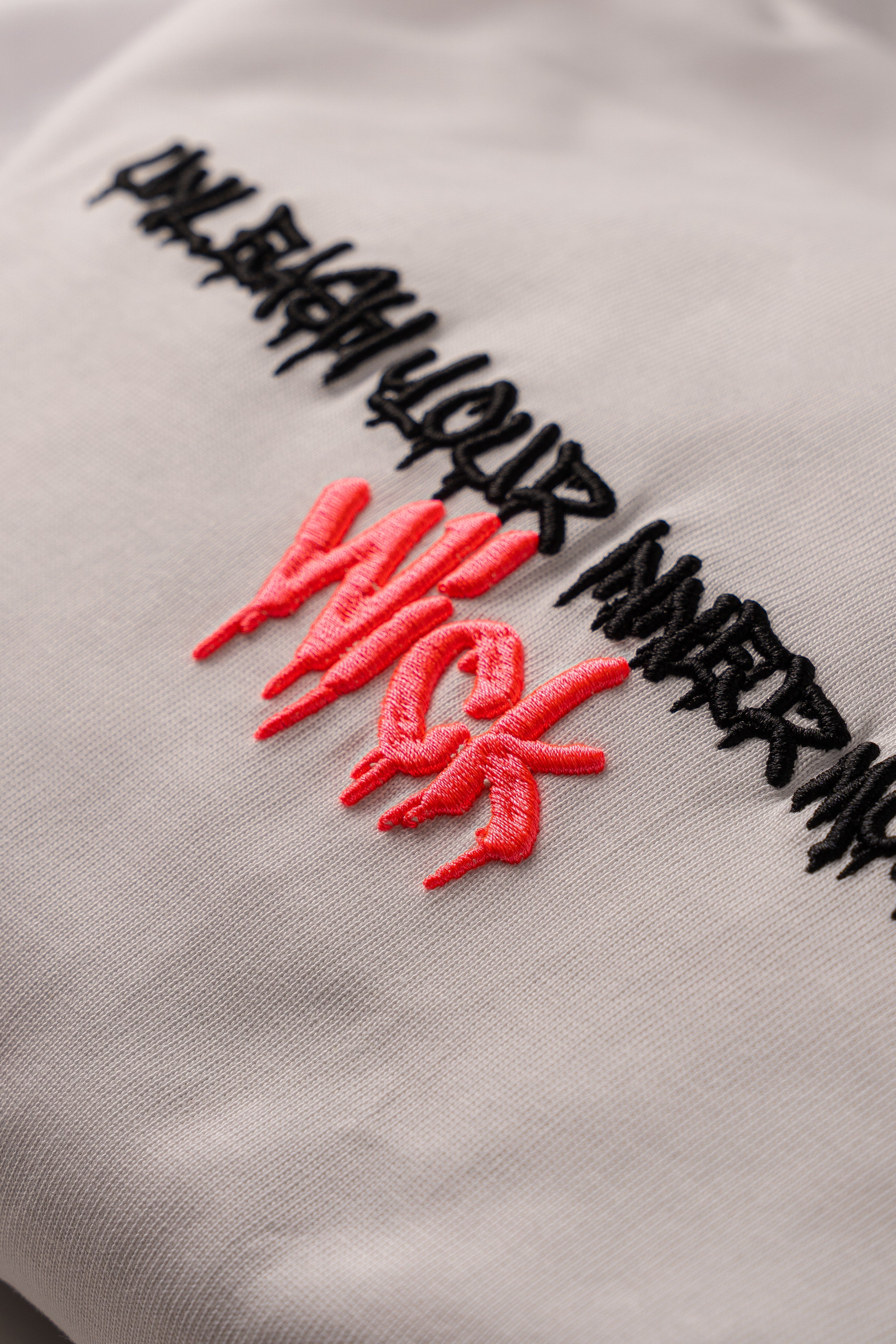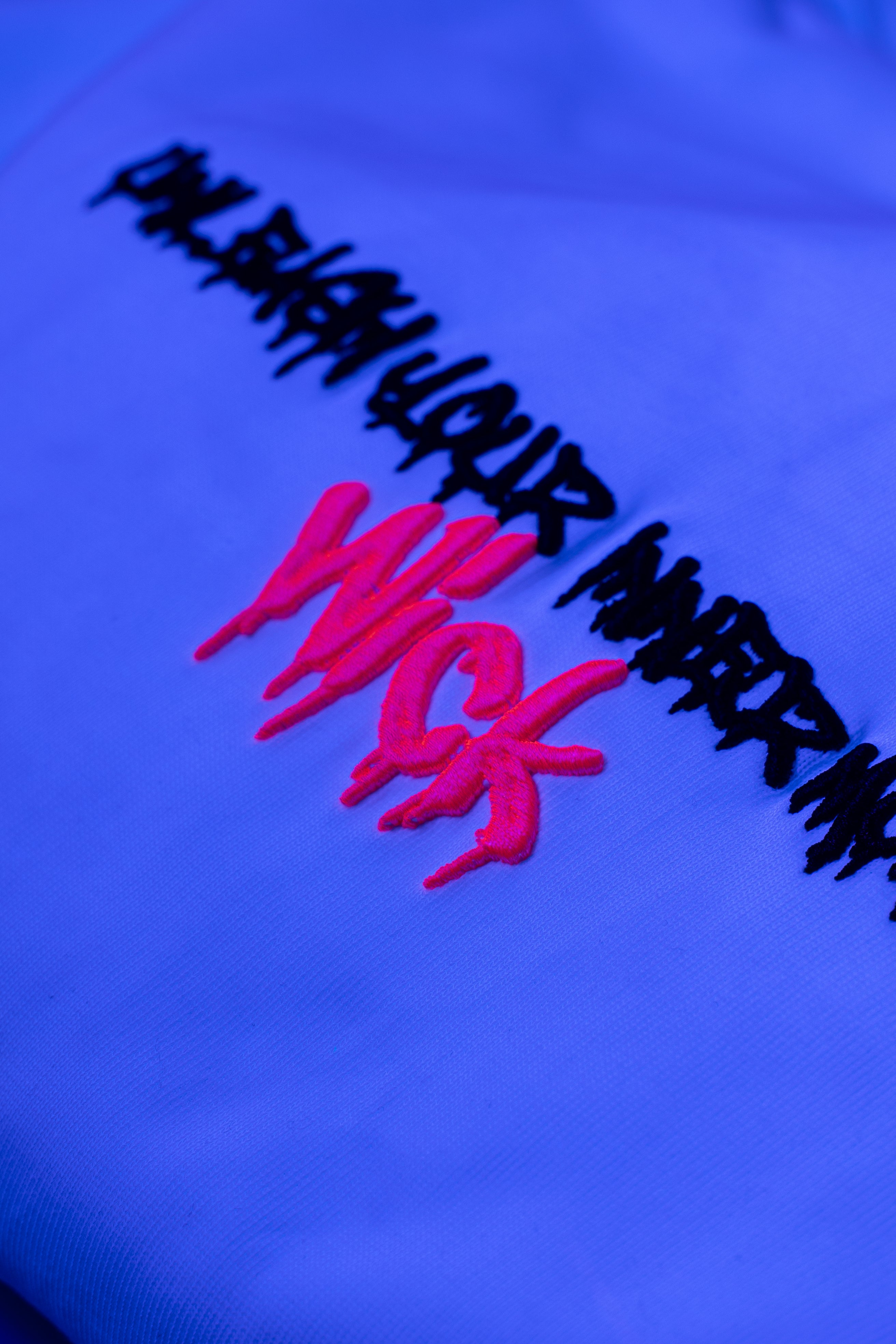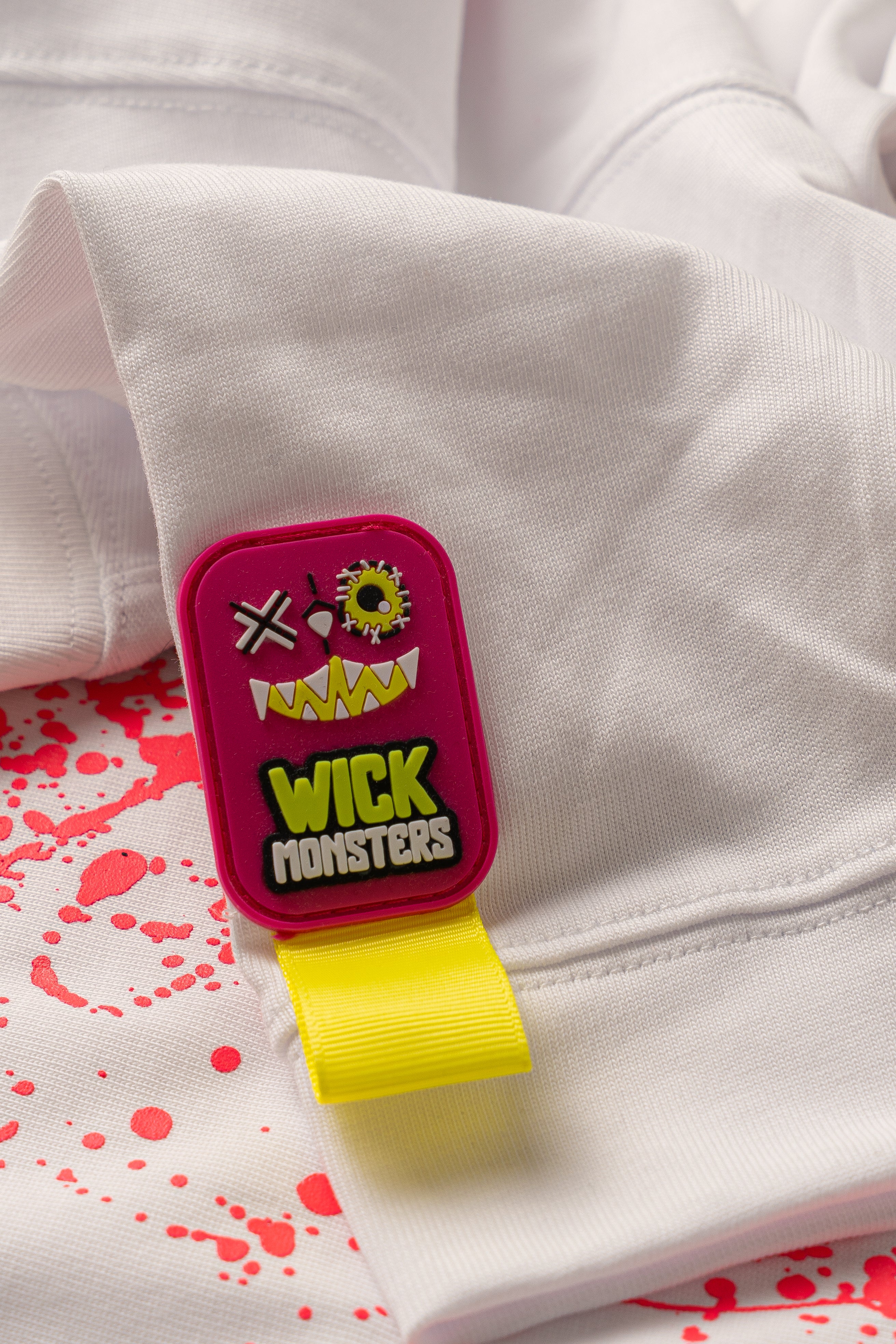 Let your inner monster run wild with the Oversized NR White Bear Tee from Wick Monsters. This tee features a neon-splattered, stitched-up bear with attitude, ready to rule the streets (and the night). Pink, yellow, and blue pops come alive under UV light, making every move a statement. Whether you’re on the festival grounds or just vibing with your crew, this tee shouts “Awaken your inner monster” in the coolest way .Glow in the dark and on UV light