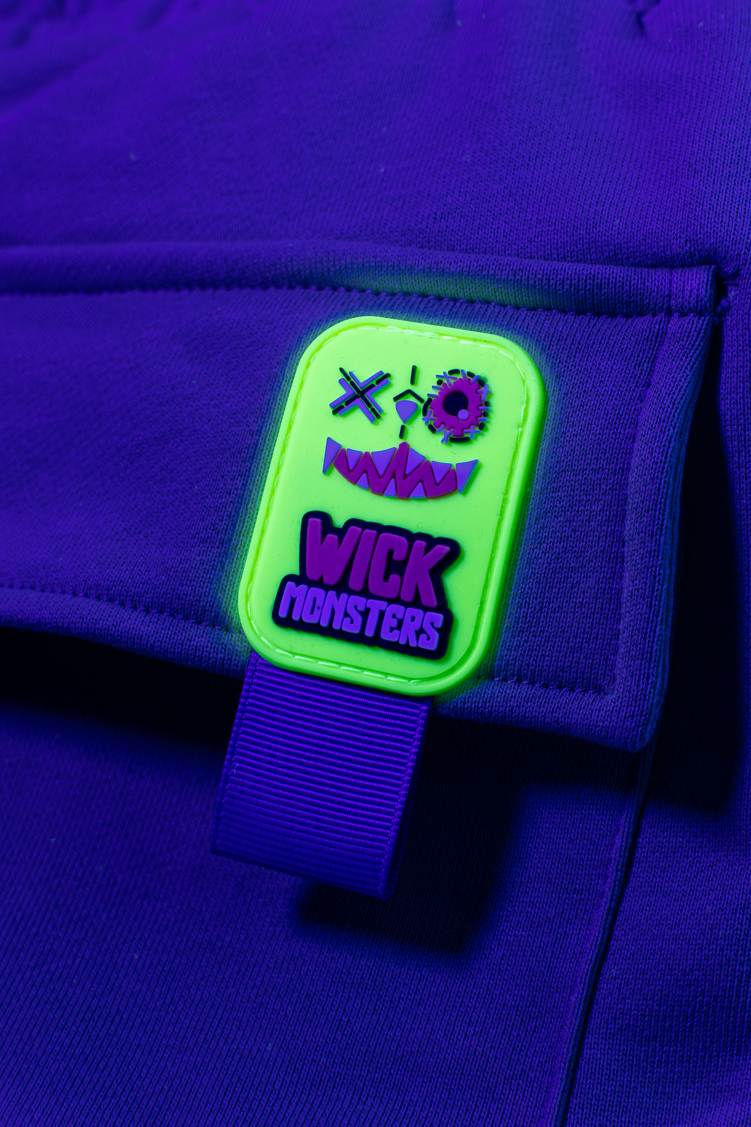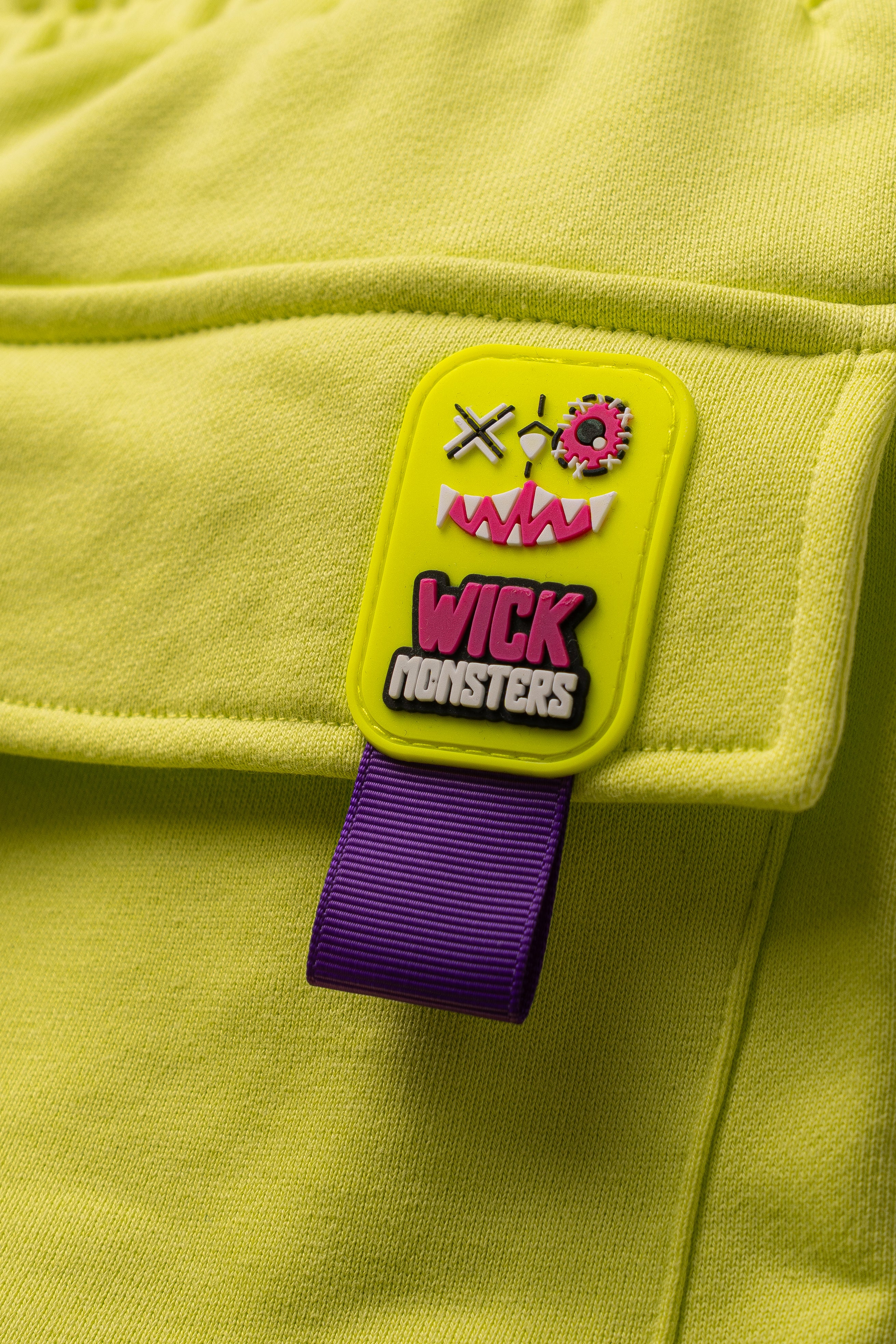 These neon yellow shorts from wick monsters light up the scene with a pop of color that refuses to be ignored. featuring a bold purple “wk” logo, side cargo pockets, and a playful patch detail, they’re perfect for adding a touch of rebellious energy to any look. under blacklight, they transform into an electrifying statement piece, ready to party from day to night.