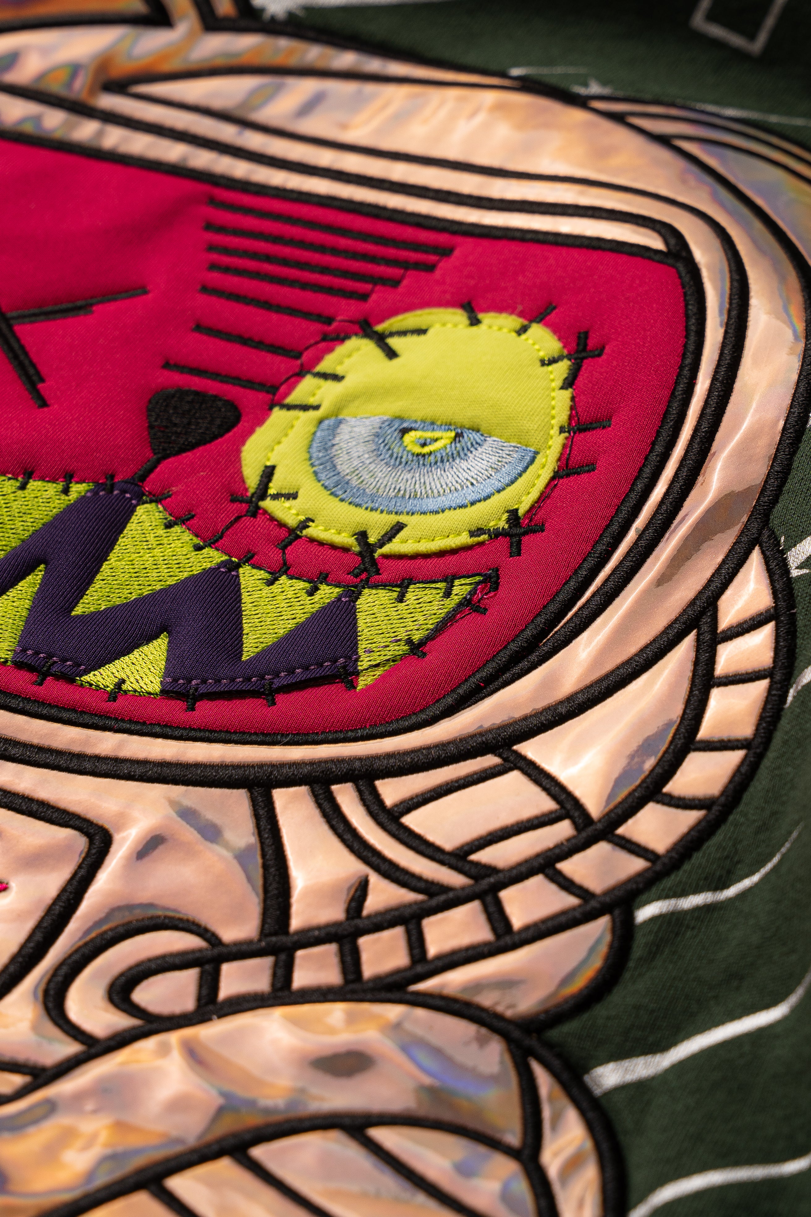 On the back, our signature glitched-out bear takes center stage — a mashup of neon pink, toxic green, and metallic detailing, sprayed with graffiti vibes that scream rebellion. The graphic is more than art; it’s a manifesto: “Be Whoever You Want To Be.”